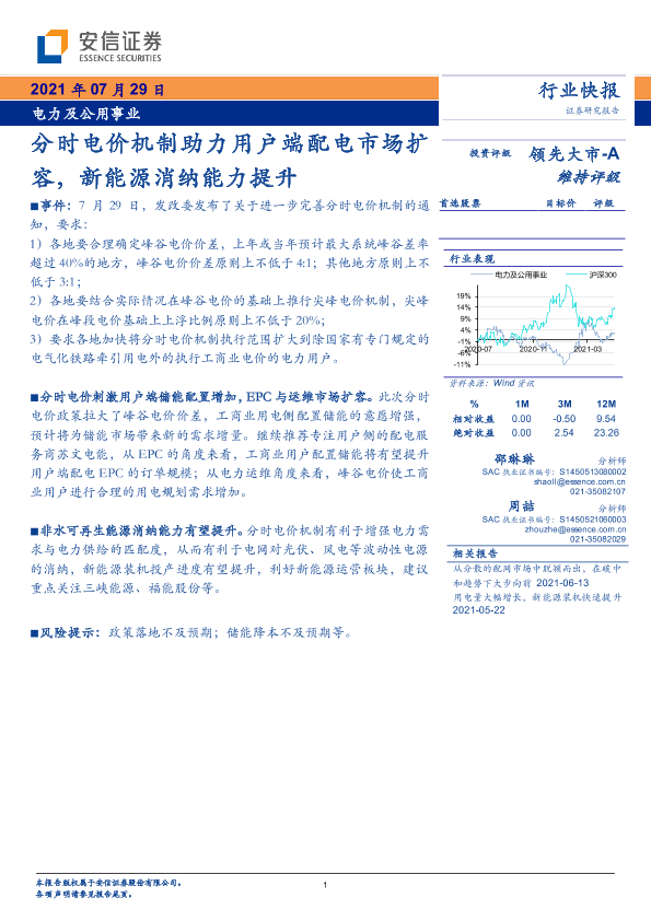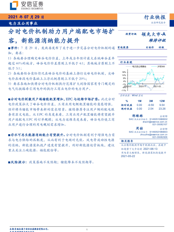 【安信证券】【20210729】分时电价机制助力用户端配电市场扩容,新能源消纳能力提升-3页