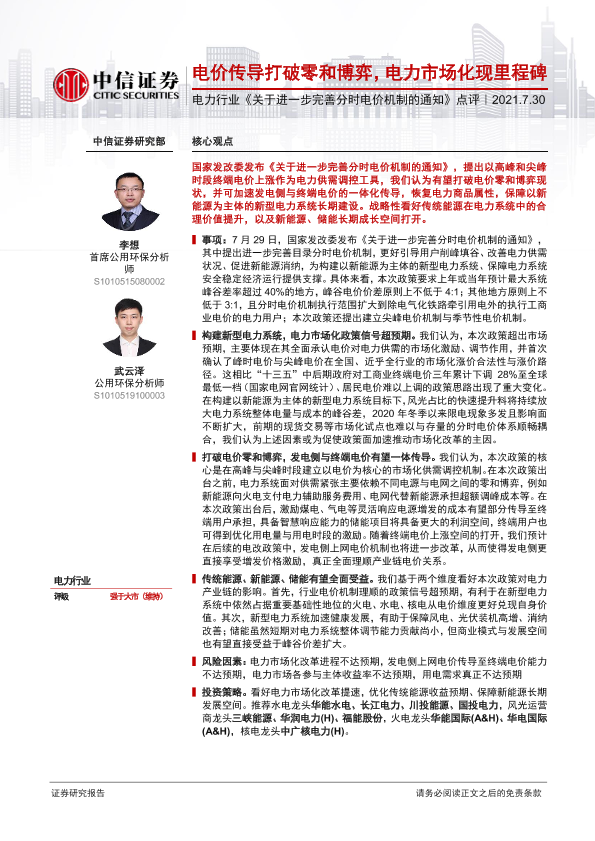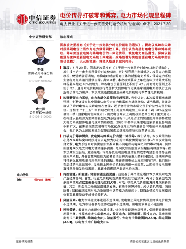 【中信证券】【20210730】关于进一步完善分时电价机制的通知点评-6页