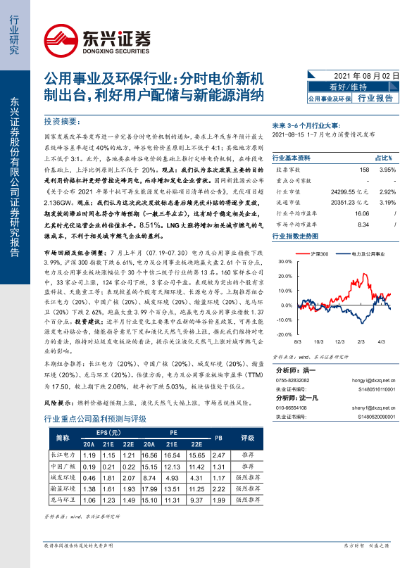 【东兴证券】【20210802】公用事业及环保行业:分时电价新机制出台,利好用户配储与新能源消纳-9页
