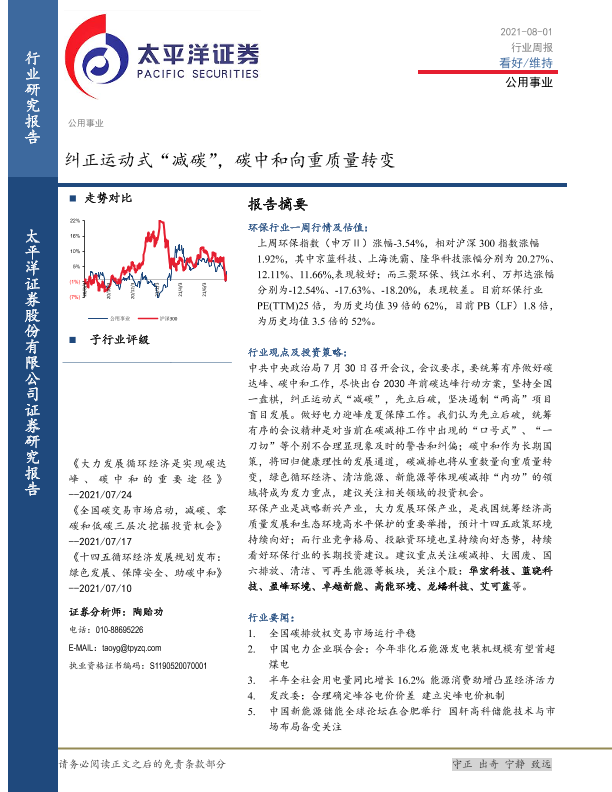 【太平洋证券】【20210801】公用事业行业周报:纠正运动式“减碳”,碳中和向重质量转变-12页