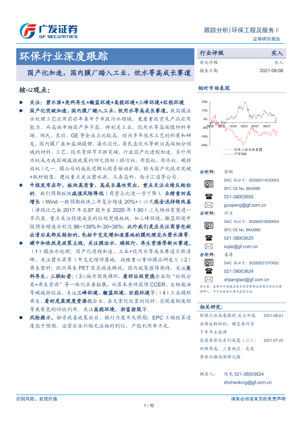 【广发证券】【20210808】环保行业深度跟踪:国产化加速,国内膜厂踏入工业、饮水等高成长赛道-10页