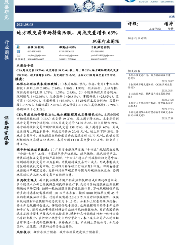 【国泰君安证券】【20210808】地方碳交易市场持续活跃,周成交量增长63%-11页