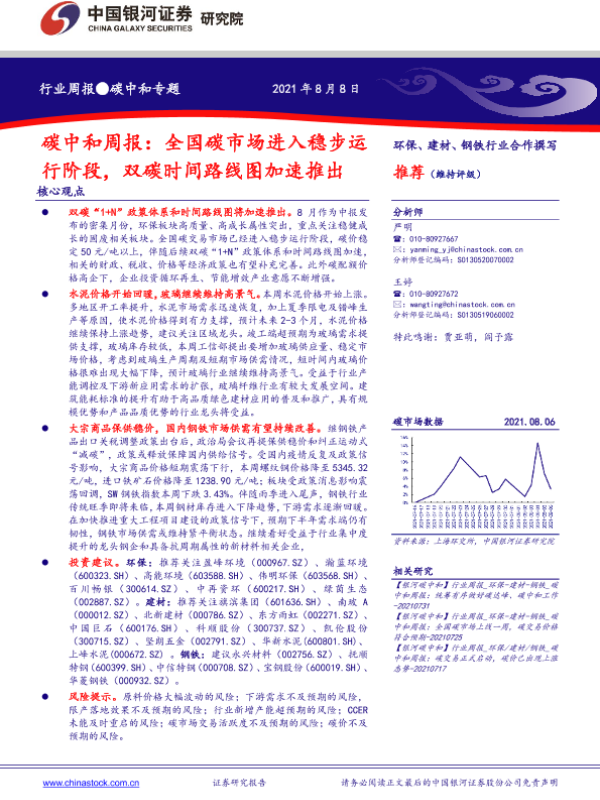 【银河证券】【20210808】碳中和周报:全国碳市场进入稳步运行阶段,双碳时间路线图加速推出-15页
