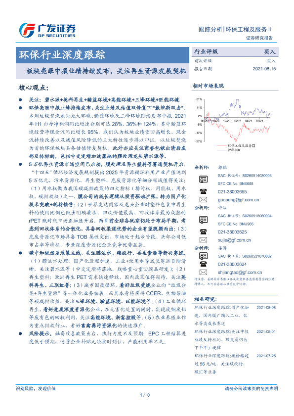 【广发证券】【20210815】环保行业深度跟踪:板块亮眼中报业绩持续发布,关注再生资源发展契机-10页