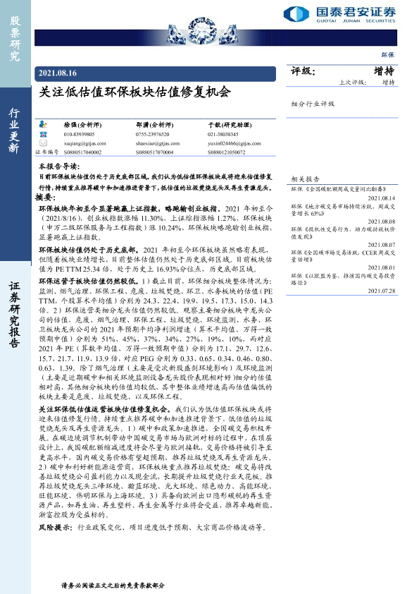 【国泰君安证券】【20210816】关注低估值环保板块估值修复机会-6页