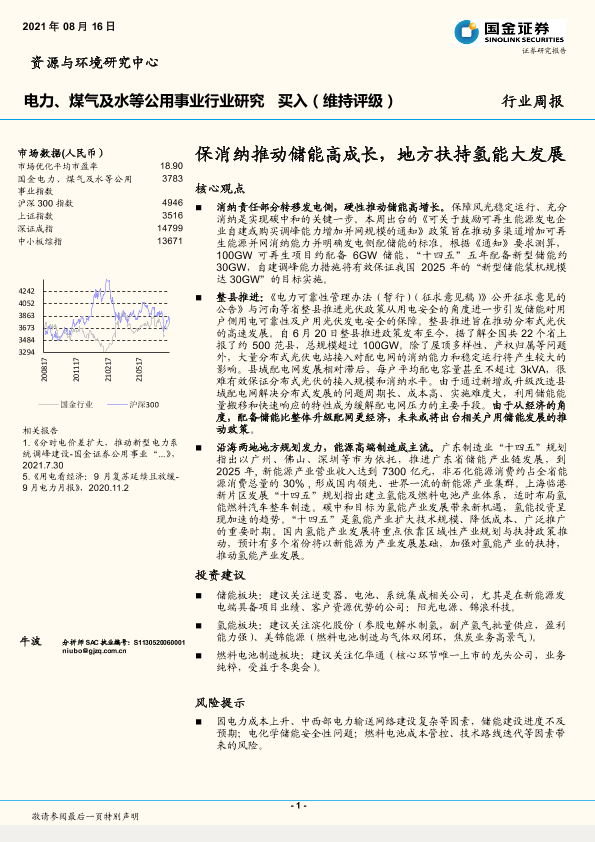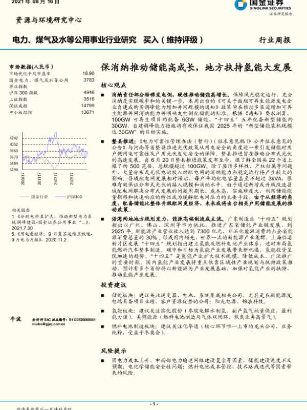 【国金证券】【20210816】电力、煤气及水等公用事业行业研究:保消纳推动储能高成长,地方扶持氢能大发展-11页