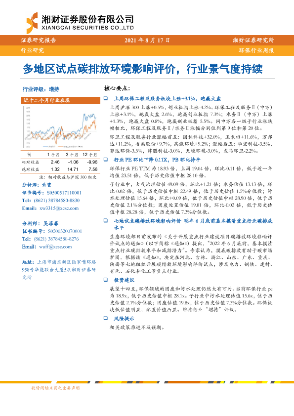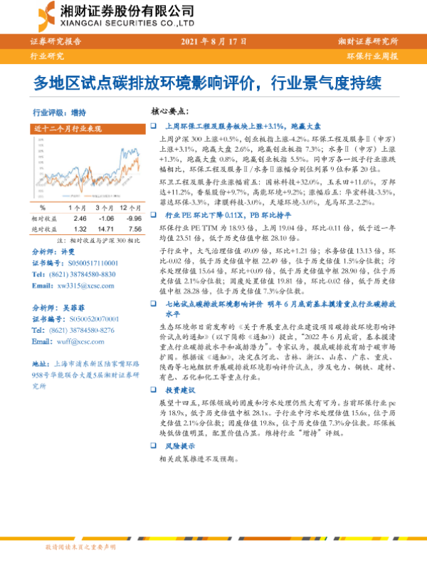 【湘财证券】【20210817】多地区试点碳排放环境影响评价,行业景气度持续-7页
