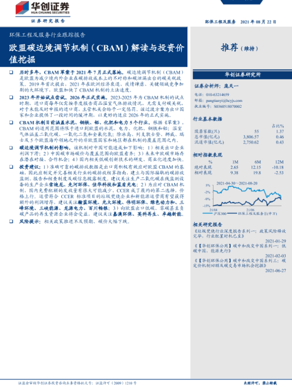 【华创证券】【20210822】环保工程及服务行业跟踪报告:欧盟碳边境调节机制(CBAM)解读与投资价值挖掘-10页