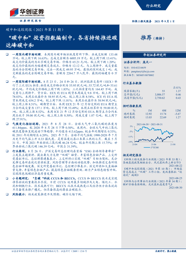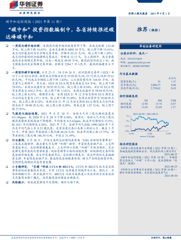 【华创证券】【20210901】碳中和追踪周报:‘碳中和’投资指数编制中,各省持续推进碳达峰碳中和-16页