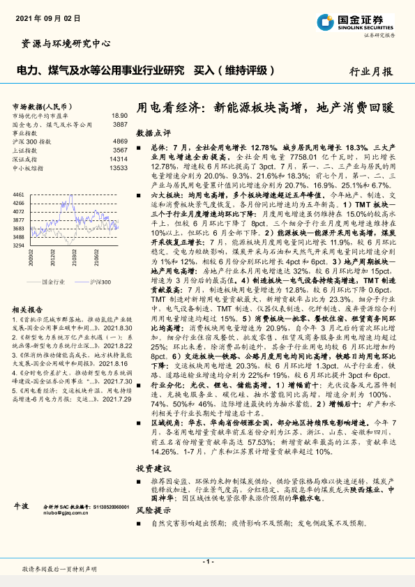 【国金证券】【20210902】用电看经济:新能源板块高增,地产消费回暖-17页