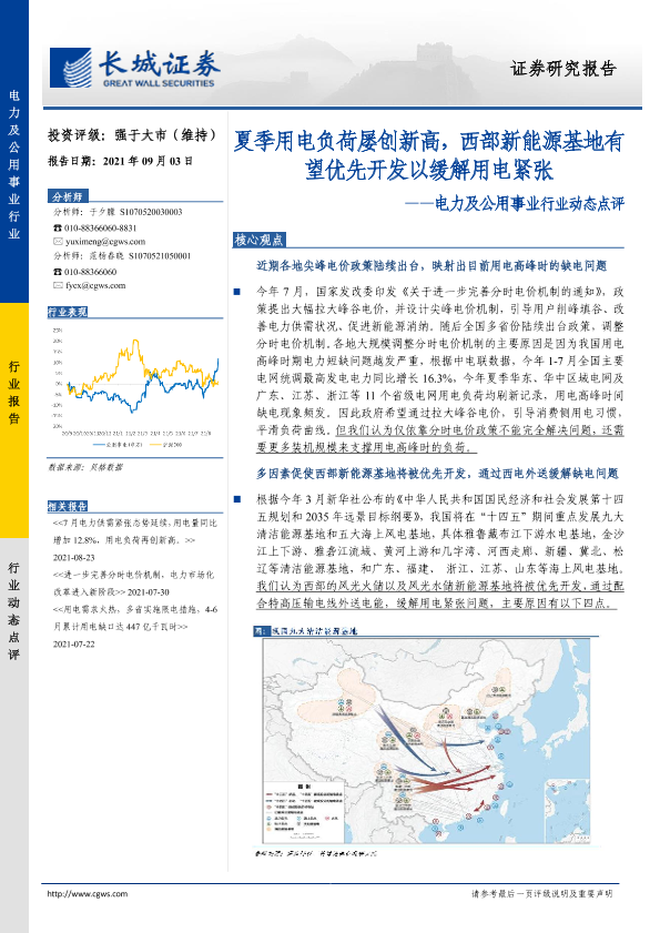 【长城证券】【20210903】夏季用电负荷屡创新高,西部新能源基地有望优先开发以缓解用电紧张-4页