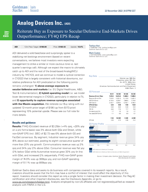 【Goldman Sachs】【20221122】Reiteration of Buy Rating Due to Secular/Defensive End-Markets Driving Outperformance; FY4Q EPS Recap-10页
