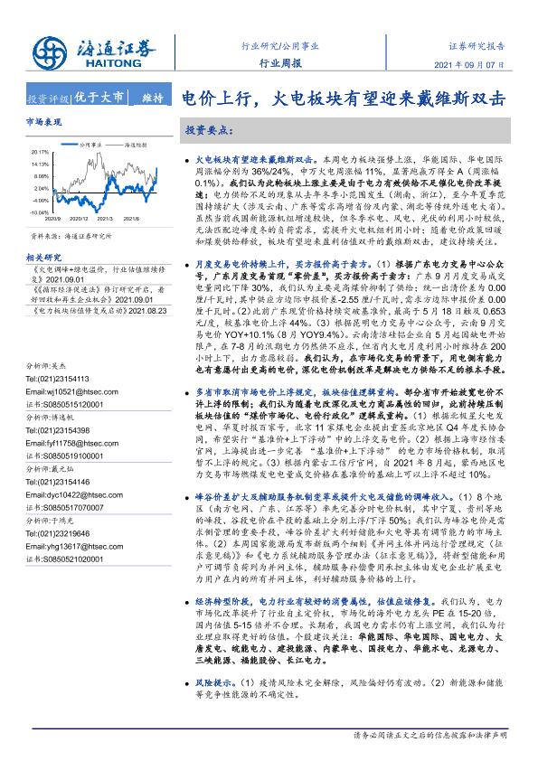 【海通证券】【20210907】公用事业行业周报:电价上行,火电板块有望迎来戴维斯双击-2页