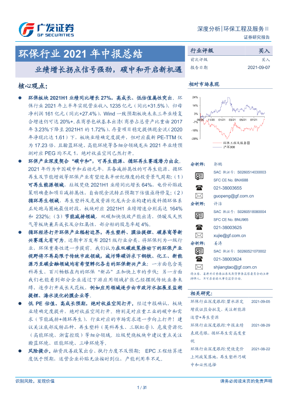 【广发证券】【20210907】环保行业2021年中报总结:业绩增长拐点信号强劲,碳中和开启新机遇-31页