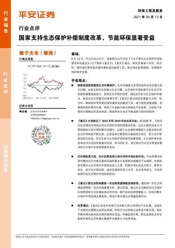 【平安证券】【20210913】环保工程及服务行业点评:国家支持生态保护补偿制度改革,节能环保显著受益-3页