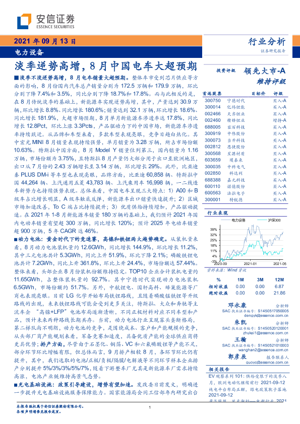 【安信证券】【20210913】电力设备行业分析:淡季逆势高增,8月中国电车大超预期-18页