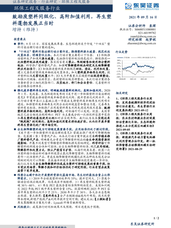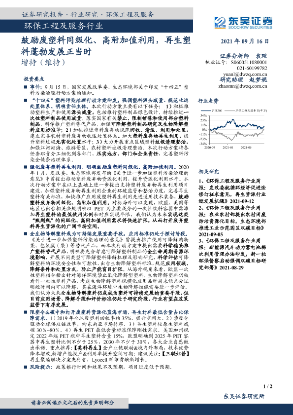 【东吴证券】【20210916】鼓励废塑料同级化、高附加值利用,再生塑料蓬勃发展正当时-2页