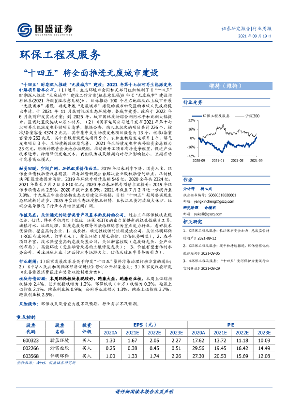 【国盛证券】【20210919】环保工程及服务行业周报:“十四五”将全面推进无废城市建设-15页