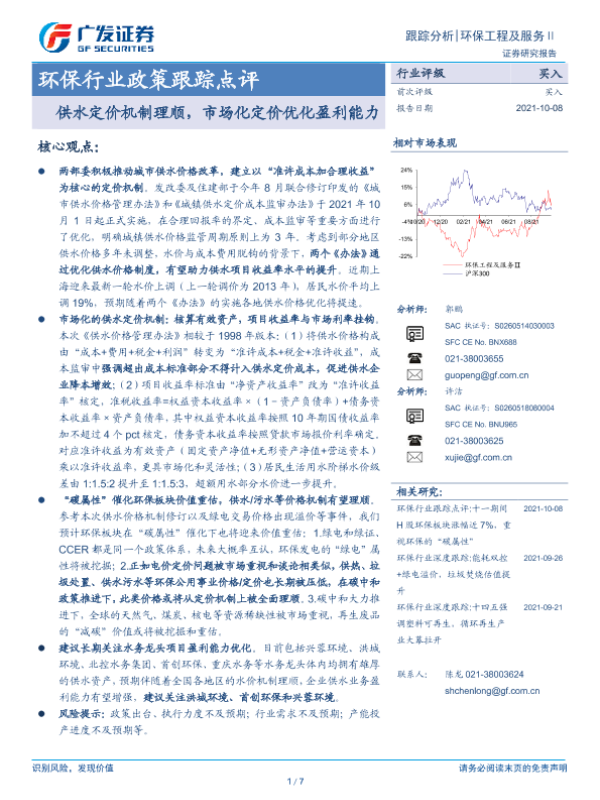 【广发证券】【20211008】环保行业政策跟踪点评:供水定价机制理顺,市场化定价优化盈利能力-7页