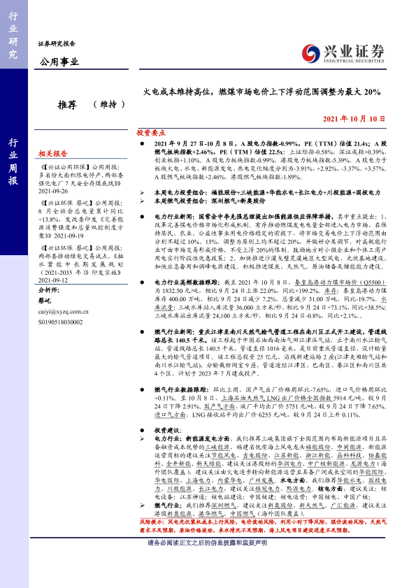 【兴业证券】【20211010】火电成本维持高位,燃煤市场电价上下浮动范围调整为最大20%-24页