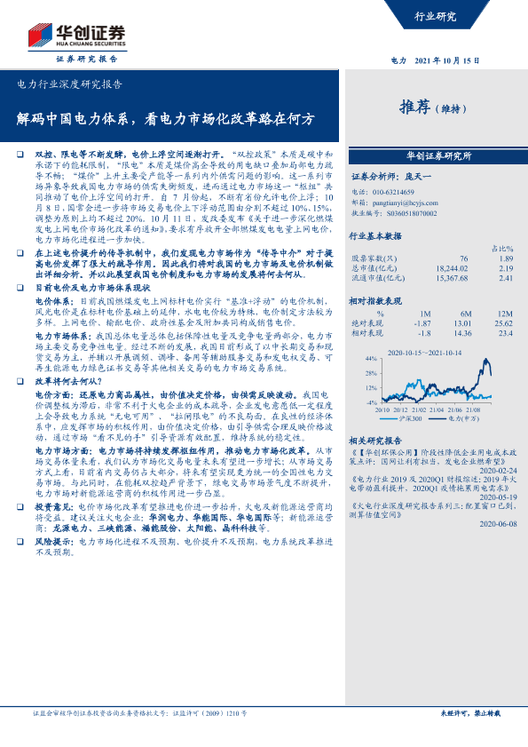 【华创证券】【20211015】解码中国电力体系,看电力市场化改革路在何方-16页