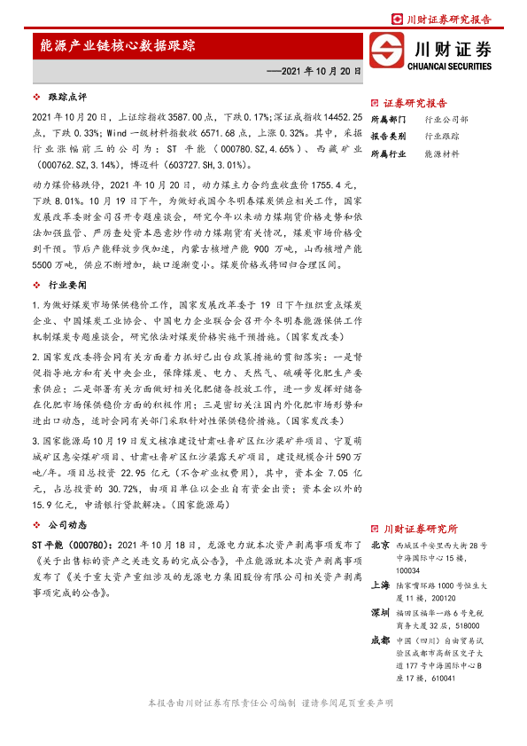【川财证券】【20211020】能源产业链核心数据跟踪-5页