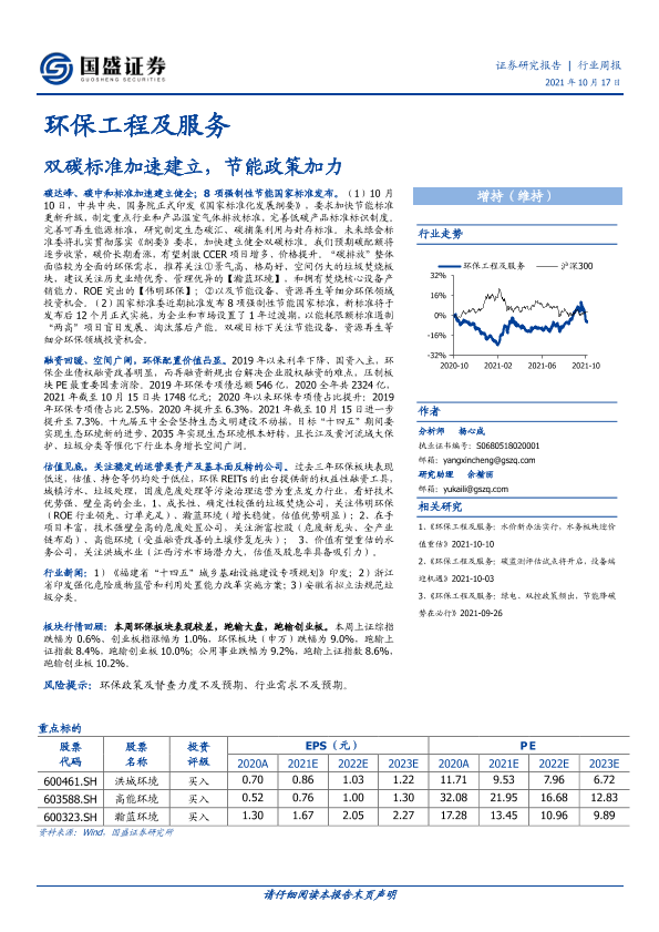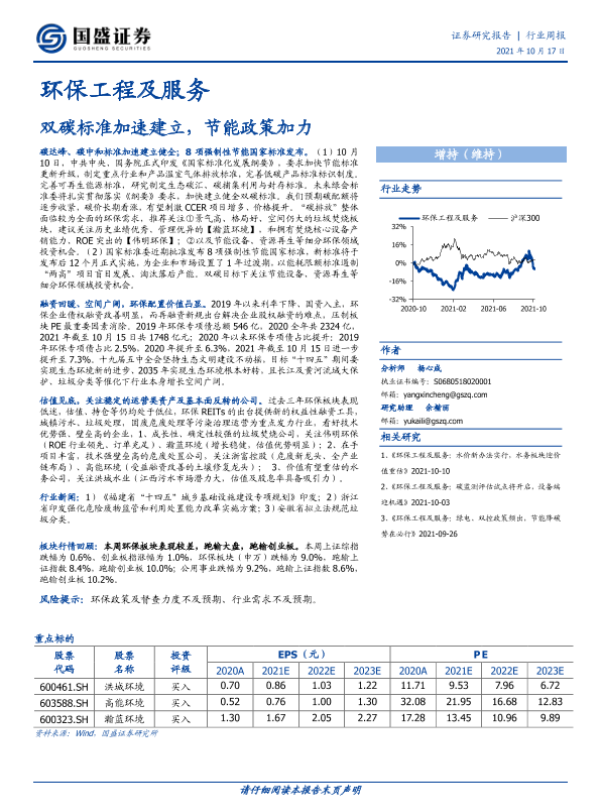 【国盛证券】【20211017】环保工程及服务行业周报:双碳标准加速建立,节能政策加力-13页