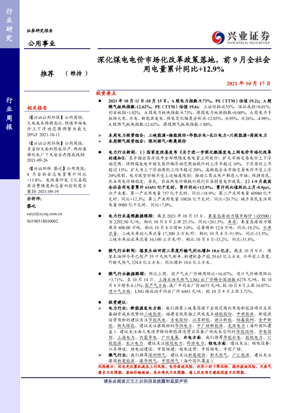 【兴业证券】【20211017】深化煤电电价市场化改革政策落地,前9月全社会用电量累计同比+12.9%-29页