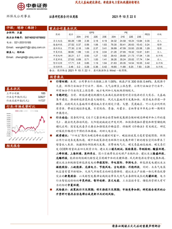 【中泰证券】【20211022】风光大基地建设推进,新能源电力装机规模持续增长-22页