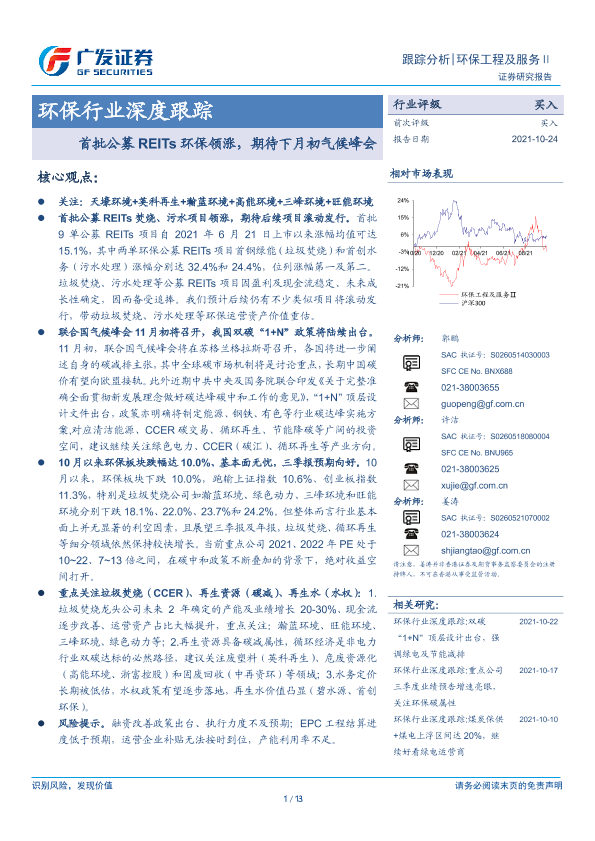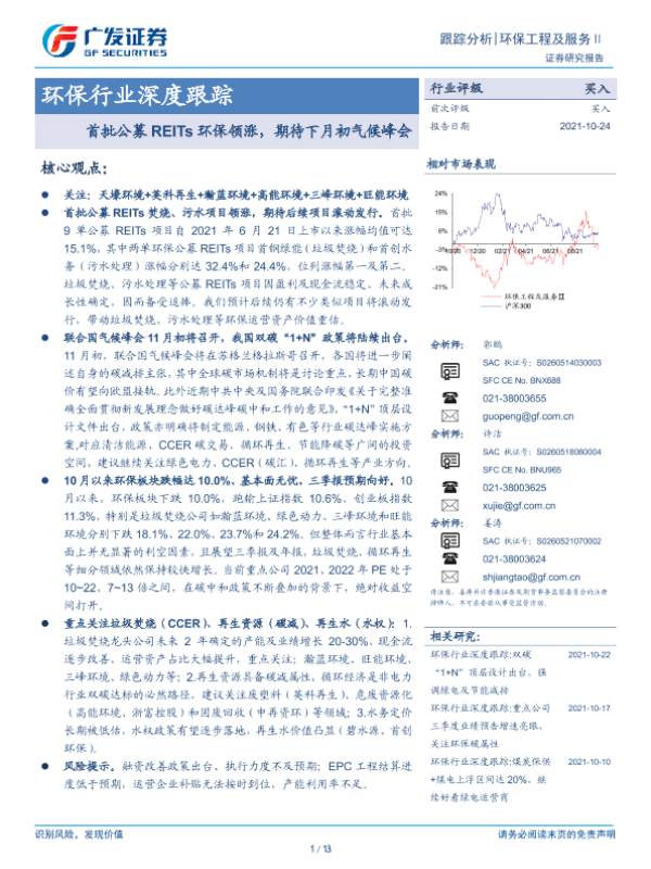 【广发证券】【20211024】首批公募REITs环保领涨,期待下月初气候峰会-13页