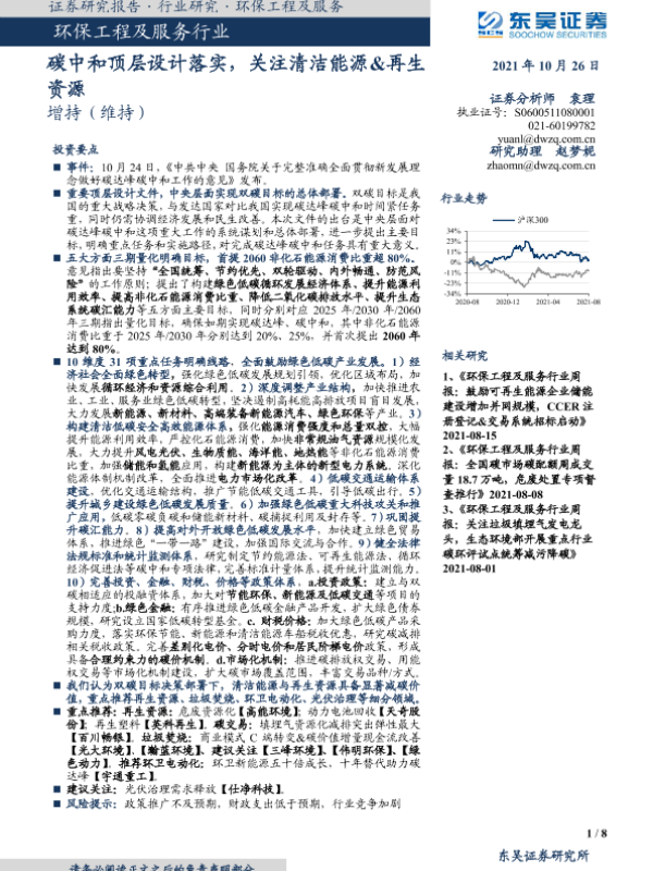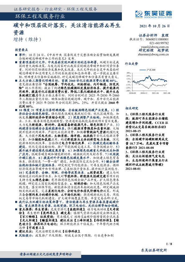 【东吴证券】【20211026】环保工程及服务行业:碳中和顶层设计落实,关注清洁能源&再生资源-8页