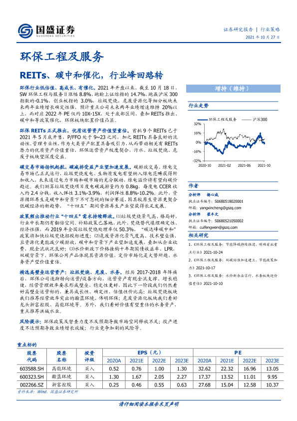 【国盛证券】【20211027】环保工程及服务:REITs、碳中和催化,行业峰回路转-27页