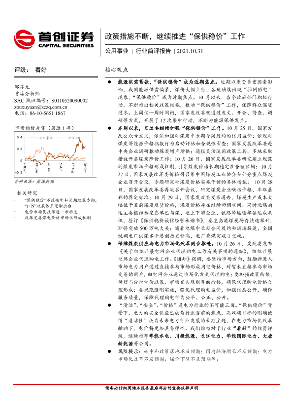 【首创证券】【20211031】公用事业行业简评报告:政策措施不断,继续推进“保供稳价”工作-6页