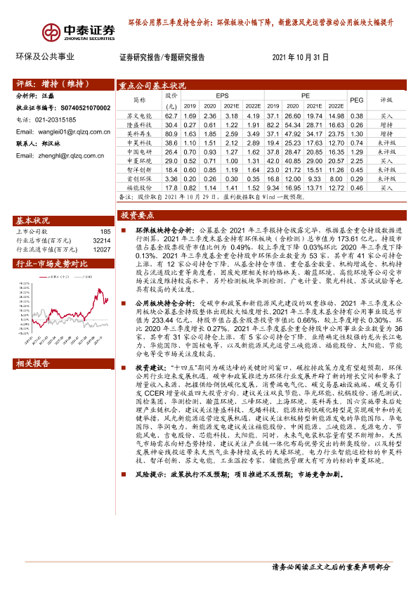 【中泰证券】【20211031】环保公用第三季度持仓分析-11页