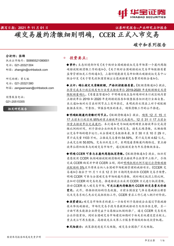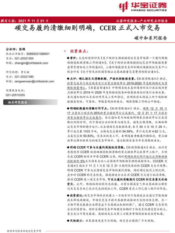 【华宝证券】【20211101】碳交易履约清缴细则明确,CCER正式入市交易-6页
