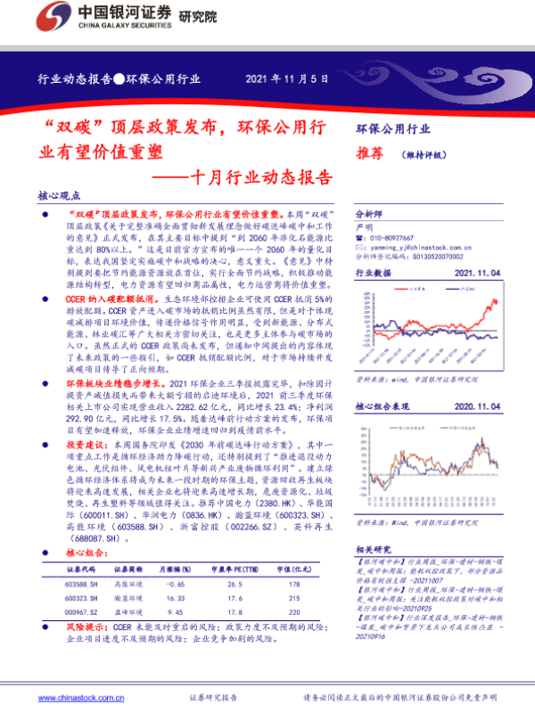 【银河证券】【20211105】环保公用行业十月行业动态报告:“双碳”顶层政策发布,环保公用行业有望价值重塑-16页