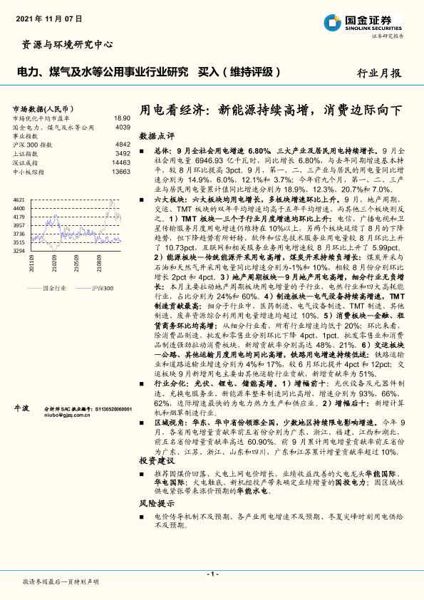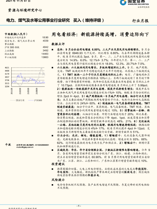 【国金证券】【20211107】用电看经济:新能源持续高增,消费边际向下-17页