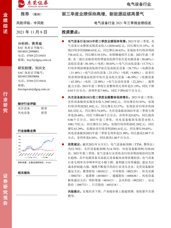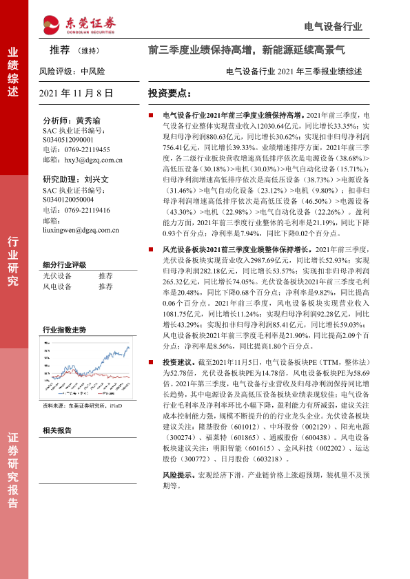 【东莞证券】【20211108】电气设备行业2021年三季报业绩综述-12页