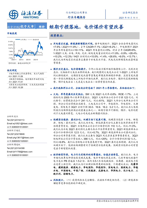 【海通证券】【20211111】公用事业行业专题报告:短期亏损落地,电价煤价有望改善-17页
