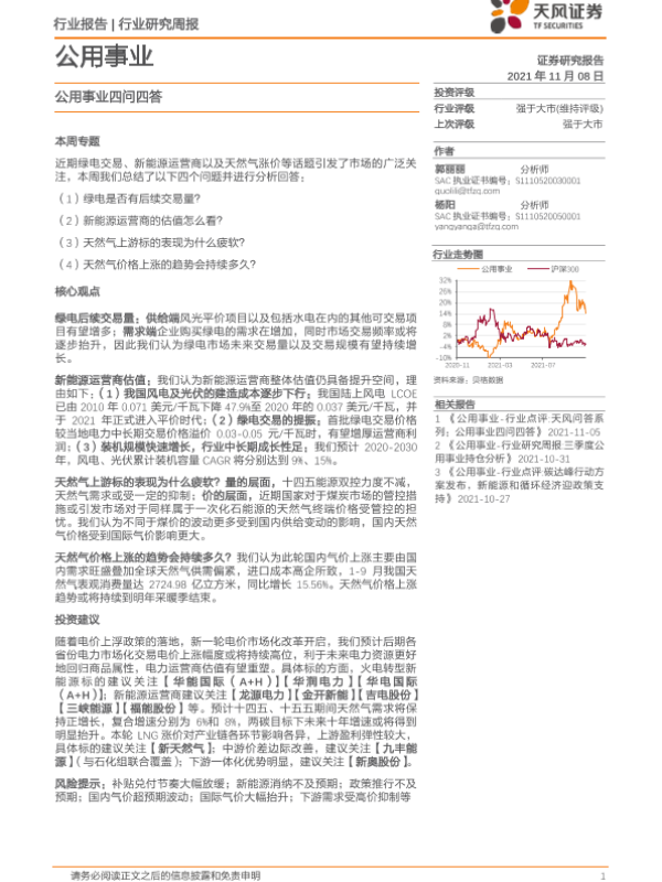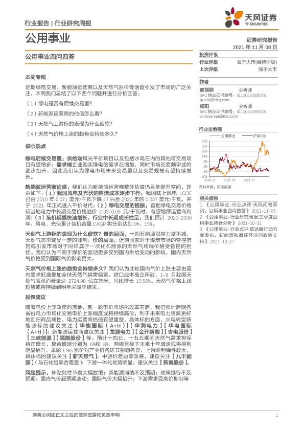【天风证券】【20211108】公用事业四问四答-15页