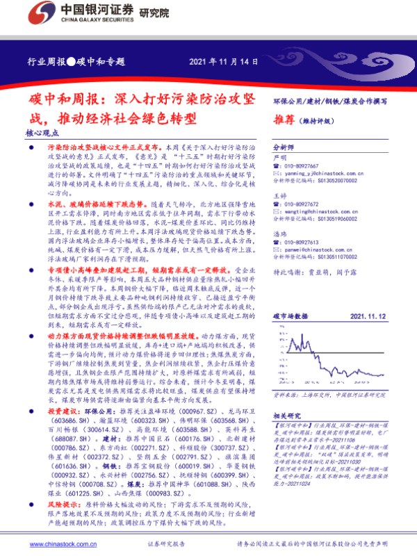 【银河证券】【20211114】碳中和周报:深入打好污染防治攻坚战,推动经济社会绿色转型-23页