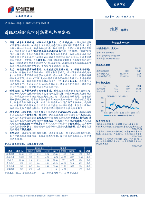 【华创证券】【20211115】环保与公用事业2022年度策略报告:着眼双碳时代下的高景气与确定性-49页