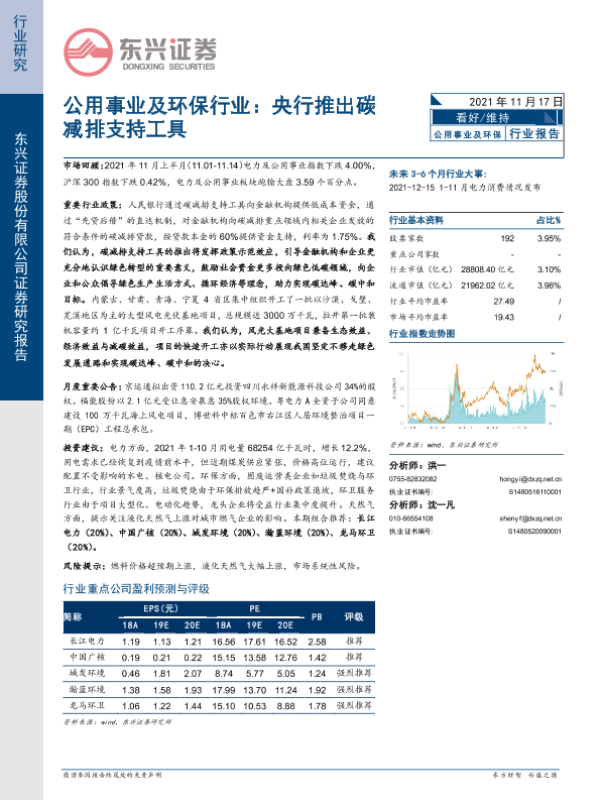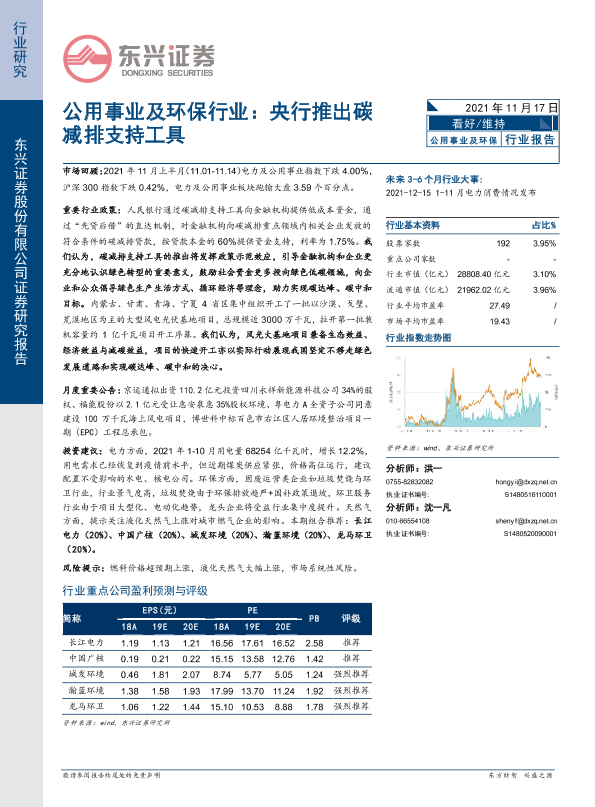 【东兴证券】【20211117】公用事业及环保行业:央行推出碳减排支持工具-8页