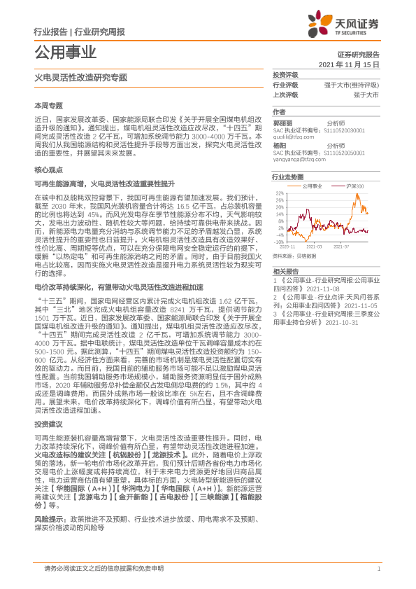 【天风证券】【20211115】公用事业行业研究周报:火电灵活性改造研究专题-15页