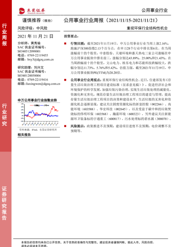 【东莞证券】【20211121】公用事业行业周报:重视环保行业结构性机会-11页