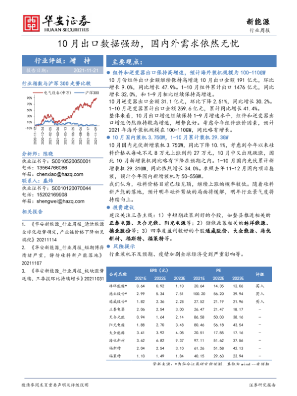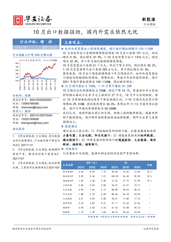 【华安证券】【20211121】10月出口数据强劲,国内外需求依然无忧-15页