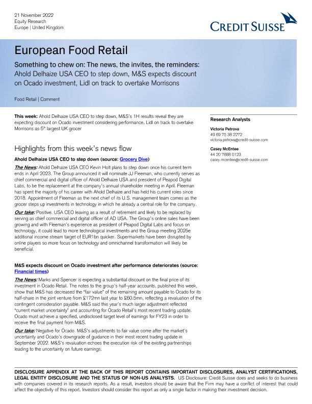 【Credit Suisse】【20221121】European Food Retail-14页