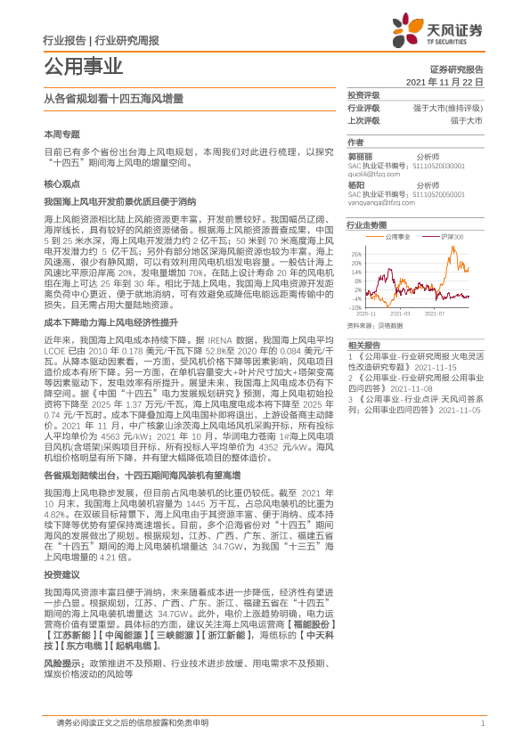 【天风证券】【20211122】从各省规划看十四五海风增量-15页