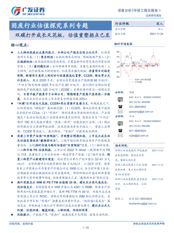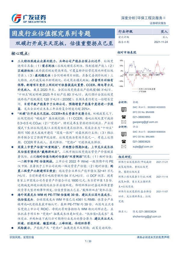 【广发证券】【20211124】固废行业估值探究系列专题:双碳打开成长天花板,估值重塑拐点已至-33页