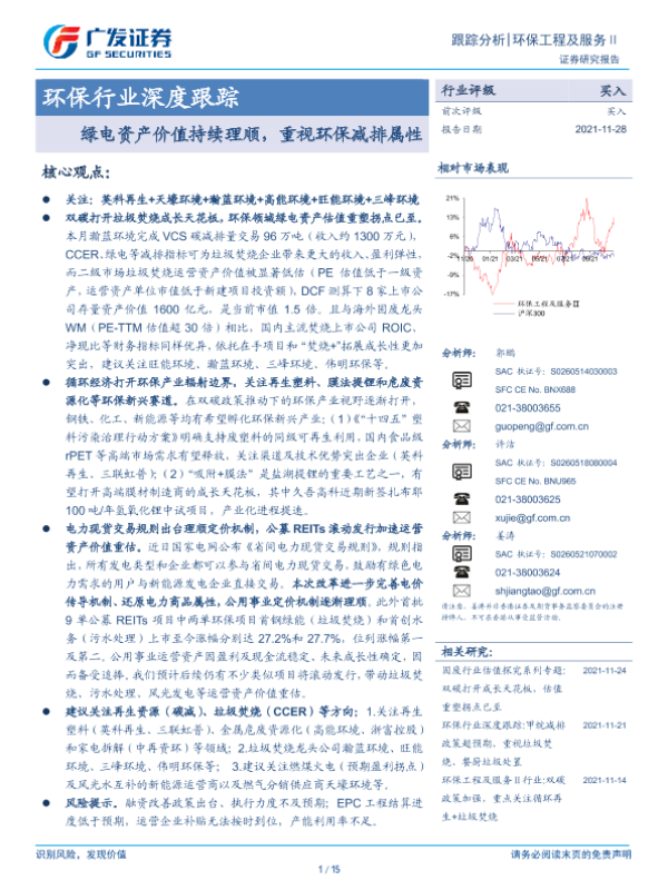 【广发证券】【20211128】环保行业深度跟踪:绿电资产价值持续理顺,重视环保减排属性-15页